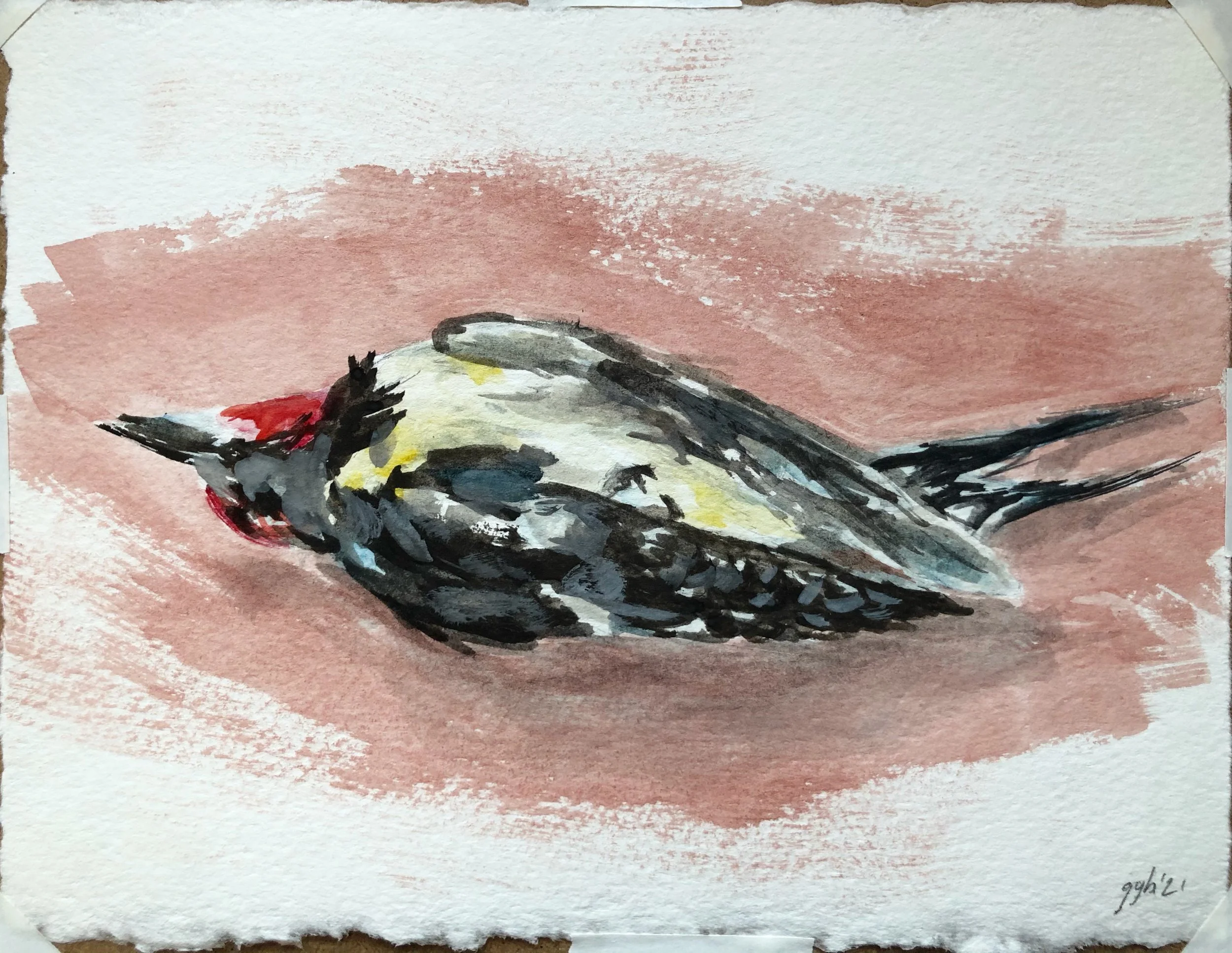 "con alas cerradas, decendido y perdido" Watercolor on paper. 7 x 9 IN. 2021.